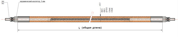 Гибкий ТЭН ЭНГ используется для нагрева коллекторов горячеканальных систем и при контурном типе обогрева. Для контроля температуры используются датчики - типа термопара.