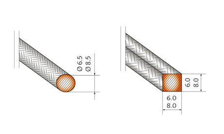 Гибкий ТЭН представлен в двух вариантах сечения: круглом и квадратном.